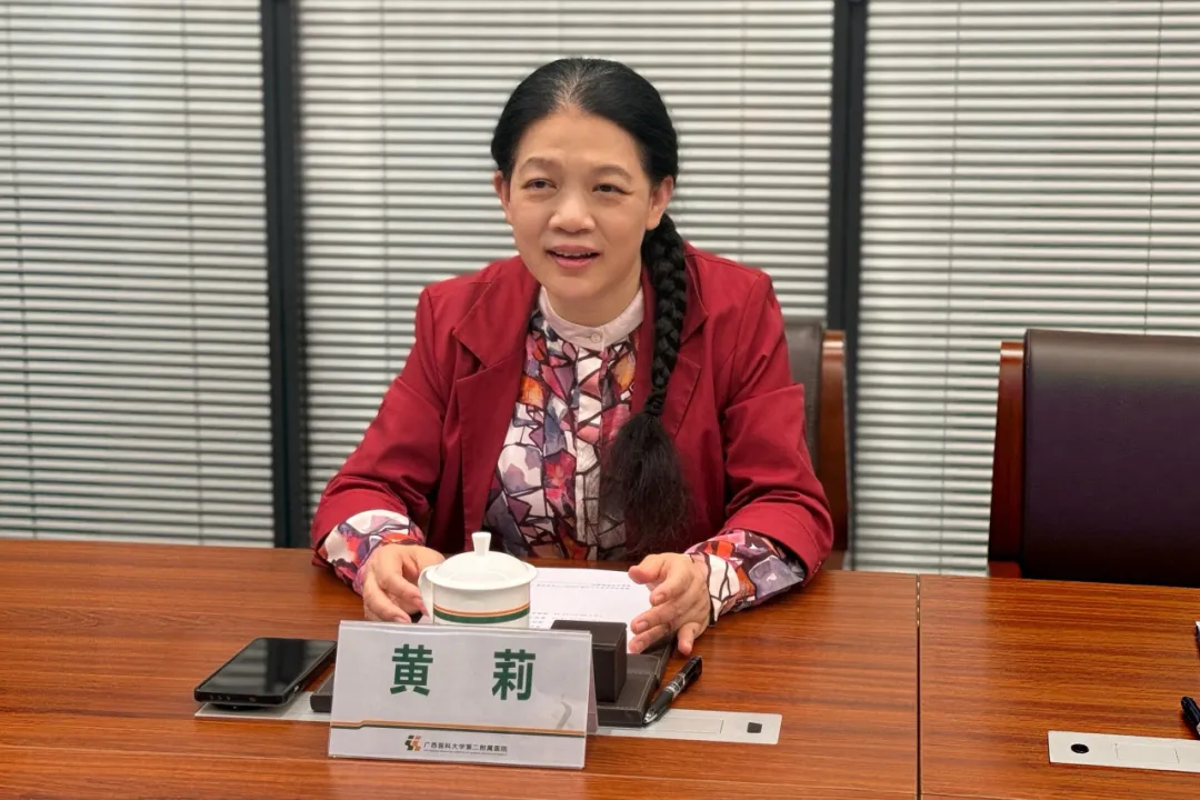 黄莉首先代表医院党政领导班子对博白县人民医院同仁的到来表示热烈欢迎。她表示,此次交流是双方深化了解、相互学习、共同进步的良好契机,希望双方围绕门诊建设、医院运营及创伤中心建设等重点话题展开深入探讨,分享宝贵经验、互学互鉴、共同提升。