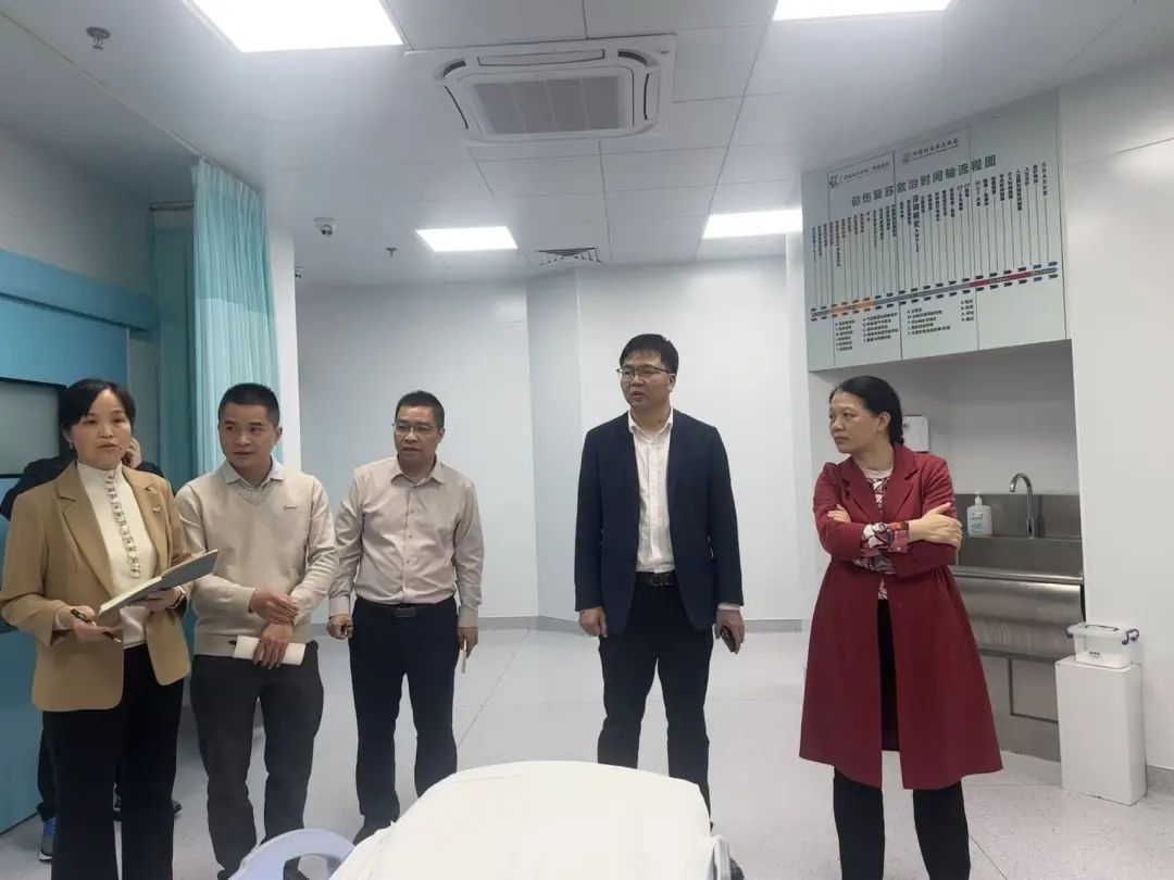座谈会结束后,博白县人民医院一行实地走访了急诊科、门诊就诊区、检验科、遗传与基因组医学中心、体检中心等科室,深入了解各科室的运行流程、信息化建设及优质服务模式。走访过程中,双方就创伤中心建设、急诊急救体系优化等话题开展互动交流,现场气氛热烈融洽。